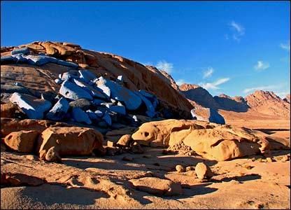 Mungkin, tak banyak yang tahu tentang gurun biru ini. Letaknya memang cukup jauh dari Kota Kairo, tapi Anda bakal terkejut dengan pemandangan di depan mata. Suatu gurun yang dipenuhi bebatuan besar berwarna biru!